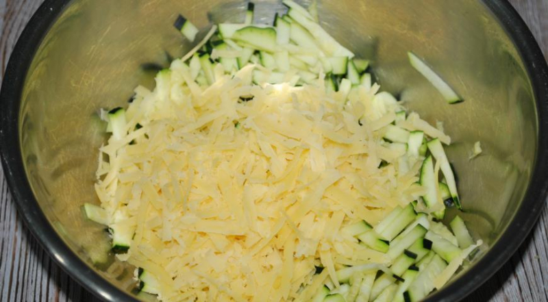 Для начинки треба молоді кабачки дрібно нарізати і натерти на крупній тертці (у мене два кабачка, один кабачок я дрібно нарізала, інший натерла на крупній тертці). Крок 2